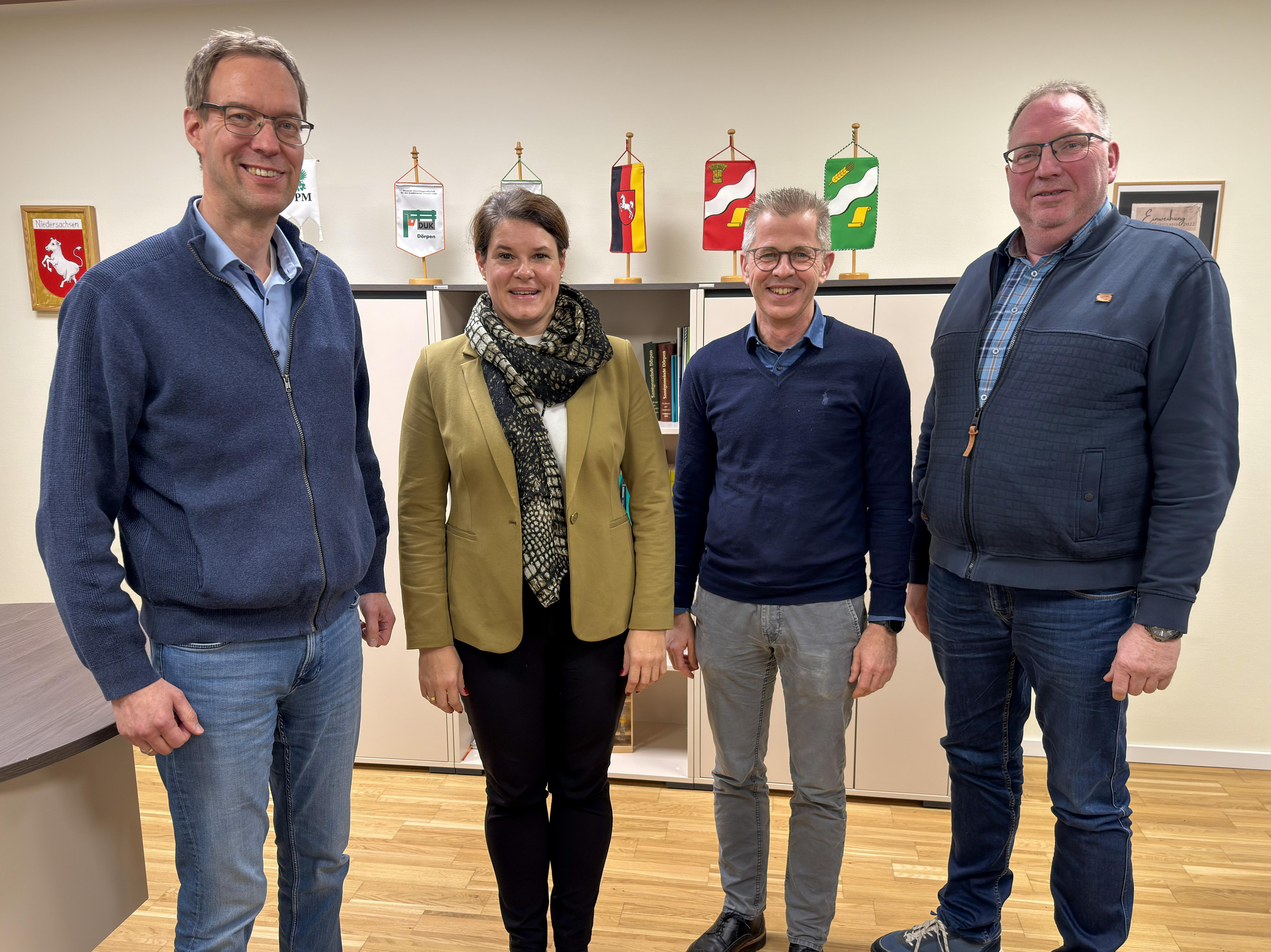 Gemeinsam mit dem bisherigen Werksleiter von UPM Nordland Papier Klaus Reimann wurde Dr. Eva Kriegbaum zum Antrittsbesuch von Samtgemeindebürgermeister Hermann Wocken und Bürgermeister Manfred Gerdes im Rathaus empfangen. Die promovierte Chemikerin ist seit Oktober diesen Jahres General Manager aller Papierproduktionsstandorte von UPM in Deutschland und leitet somit auch das Werk in Dörpen.